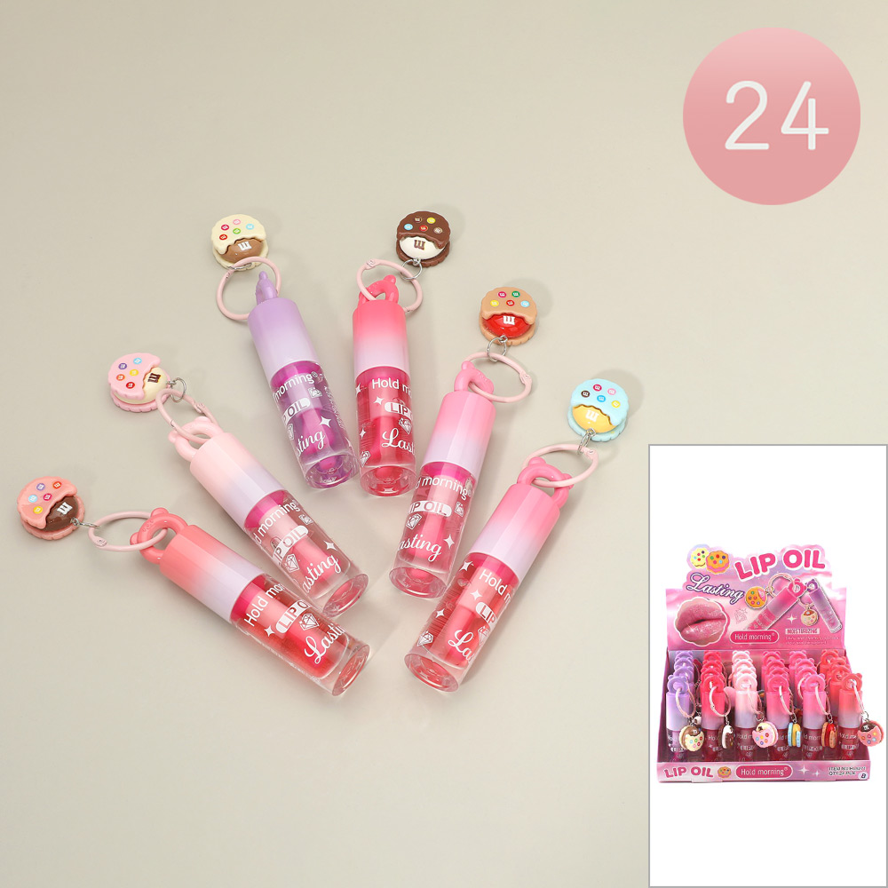 Details • Size : 4" L • Charm Size : 0.8" X 0.8" • Trendy lip oil accessory designed with a wearable bracelet and attached keychain charm for easy carrying. Combines beauty and playful style, making it ideal for party favors, gift assortments, and novelty displays. A fun, portable cosmetic item that adds excitement to everyday beauty routines.