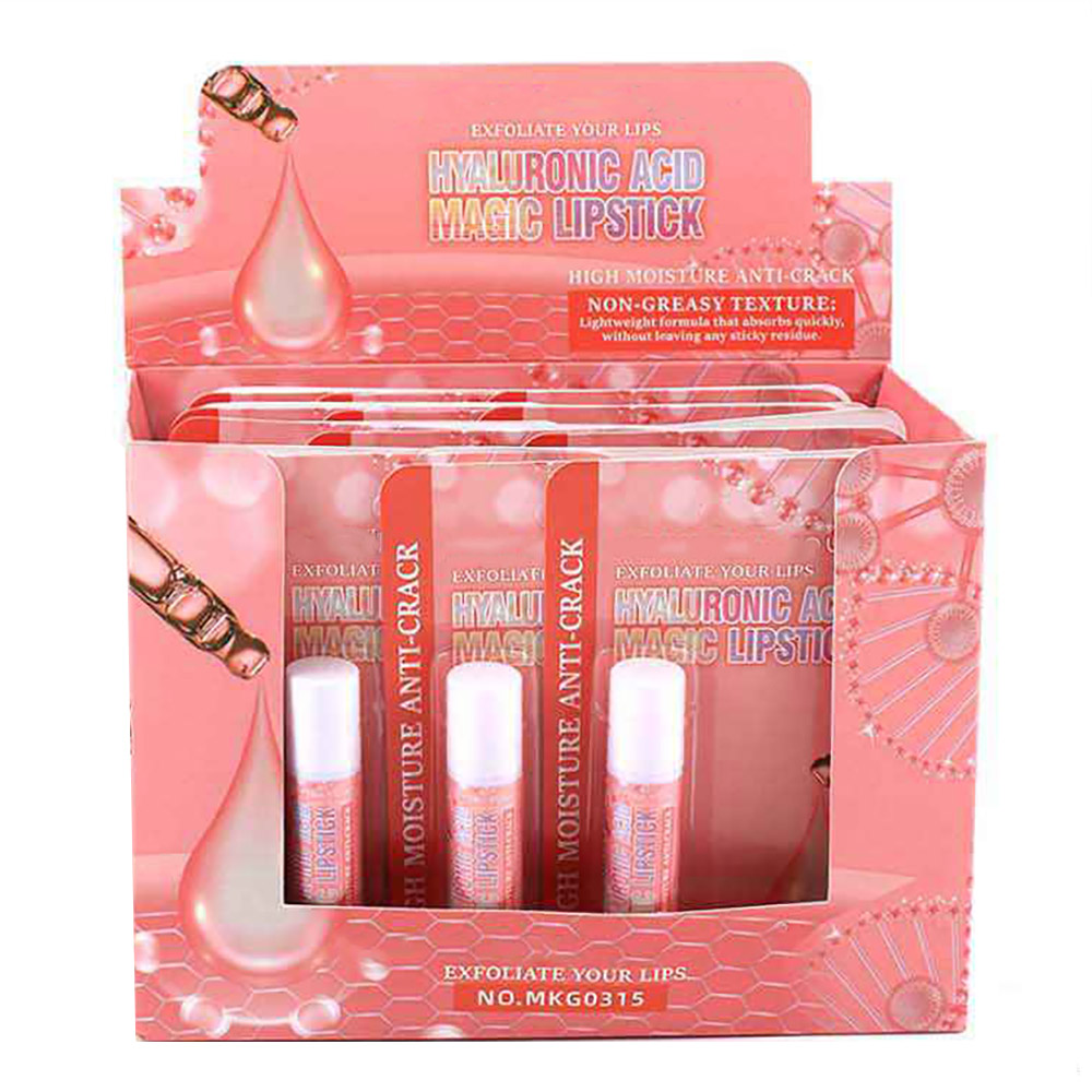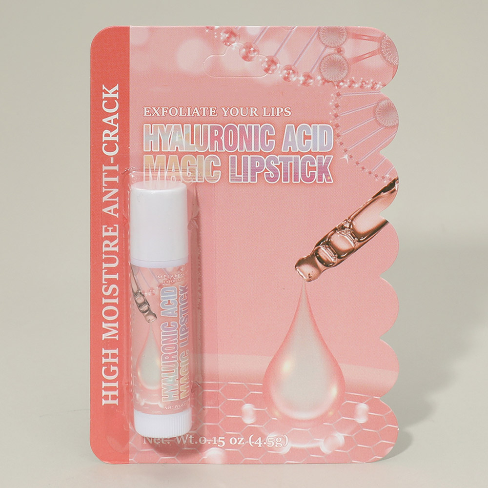 Details • Size : 0.15oz (4.5g) • This hyaluronic acid magic lipstick is designed to support smooth, moisturized lips with a lightweight, easy-to-use formula. Ideal for daily lip care, it helps improve the look of dryness while delivering a comfortable feel. Perfect for beauty counters, gift sets, travel displays, and impulse-buy assortments. A popular cosmetic essential for everyday routines and seasonal promotions.