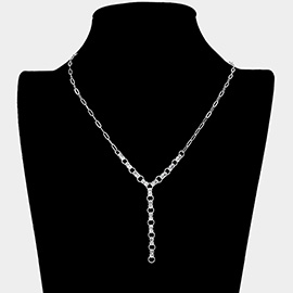 Stone Paved Cross Bow Crescent Pearl Charm Station Chain Necklace
