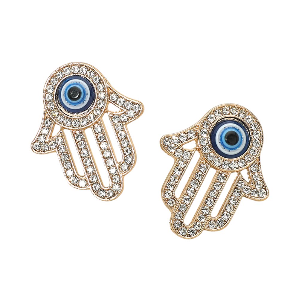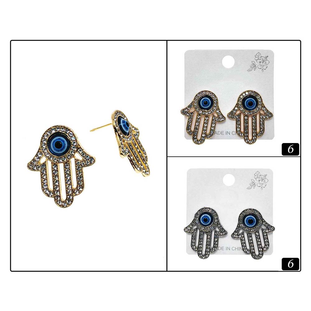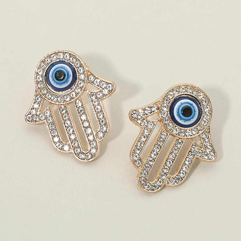 12Pairs - Evil Eye Accent Rhinestone Pave Hamsa Hand Earrings