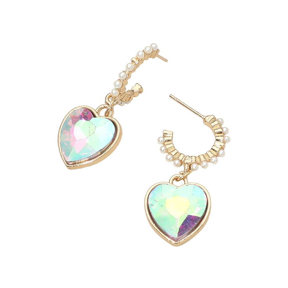 Details • Size : 0.7" X 1.4" • Post Back • Charming drop earrings featuring a faceted heart accent suspended from a delicate hoop with refined bead detailing. Designed for lightweight comfort and playful elegance, they add movement and shine to any look. Ideal for everyday styling, parties, gifting, and special occasions with a romantic, modern touch.