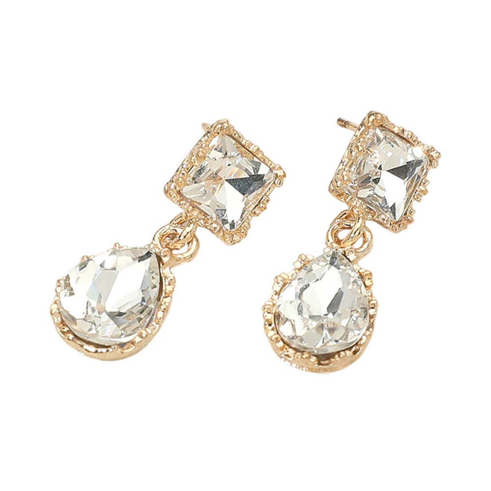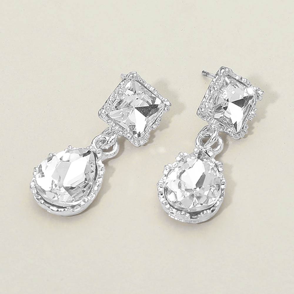• Striking drop earrings featuring a geometric square stud paired with a faceted teardrop accent for elegant movement and shine. Designed to feel lightweight and comfortable, they elevate both day and evening looks. Ideal for weddings, formal events, parties, gifting, and statement accessory collections seeking timeless sparkle and refined style.