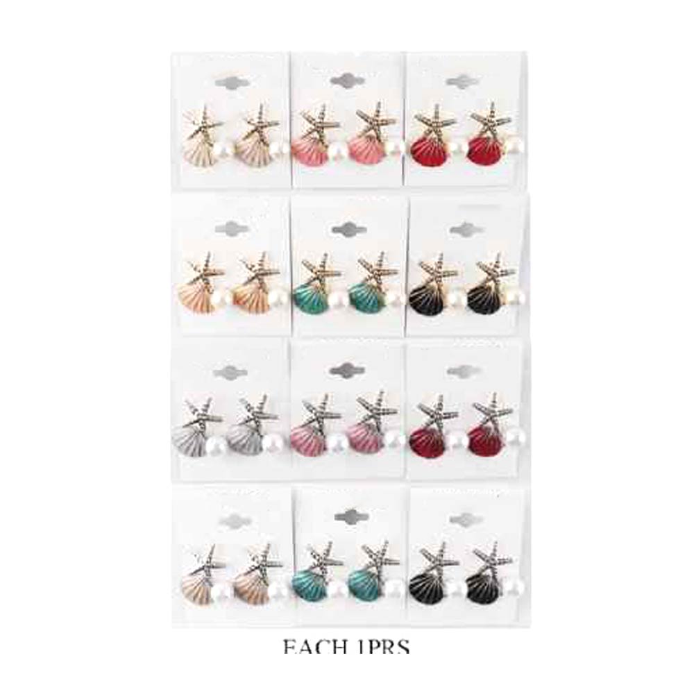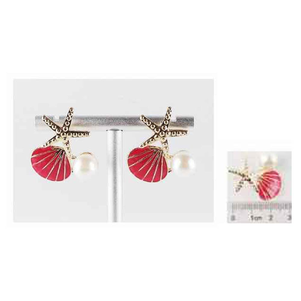 Details • Size : 1.2" X 1.2" • Post Back • These starfish shell stud earrings feature a textured starfish design paired with a sculpted shell and a pearl-style accent. Inspired by coastal charm, they add a playful yet elegant touch to everyday outfits, vacations, and resort looks.