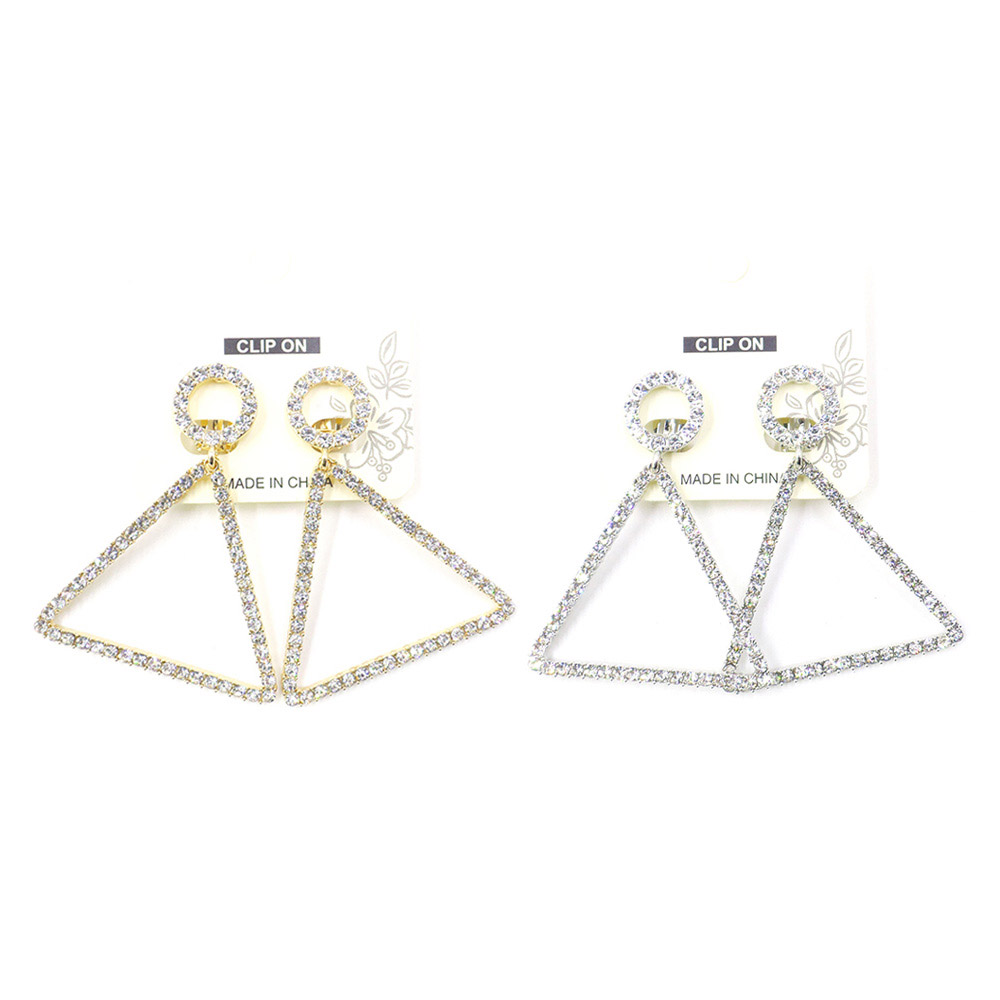 12Pairs - Rhinestone Pave Open Triangle Link Dangle Clip on Earrings