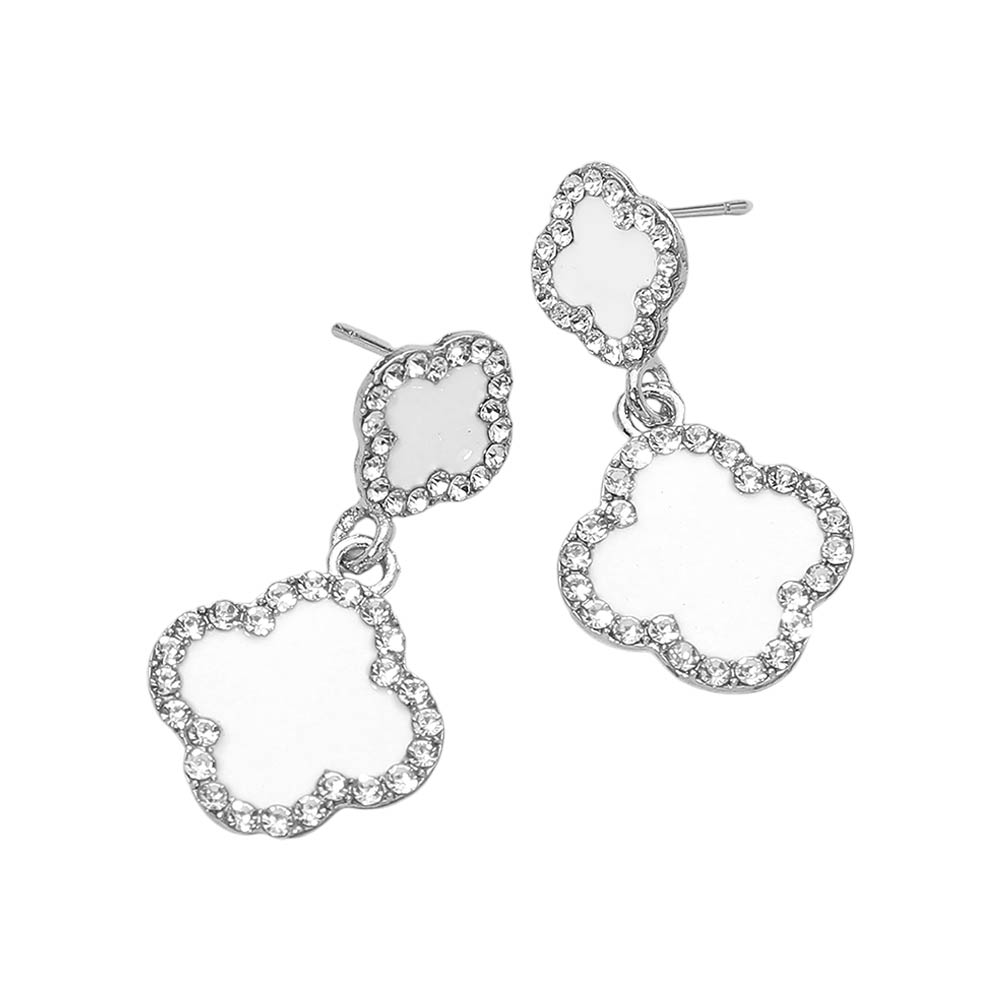 • Elegant drop earrings designed with a classic quatrefoil silhouette accented by a refined pavĂ©-style outline. Lightweight with graceful movement, they offer a timeless look that transitions easily from day to night. Ideal for everyday wear, special occasions, gifting, and adding a polished, sophisticated touch to any accessory collection.