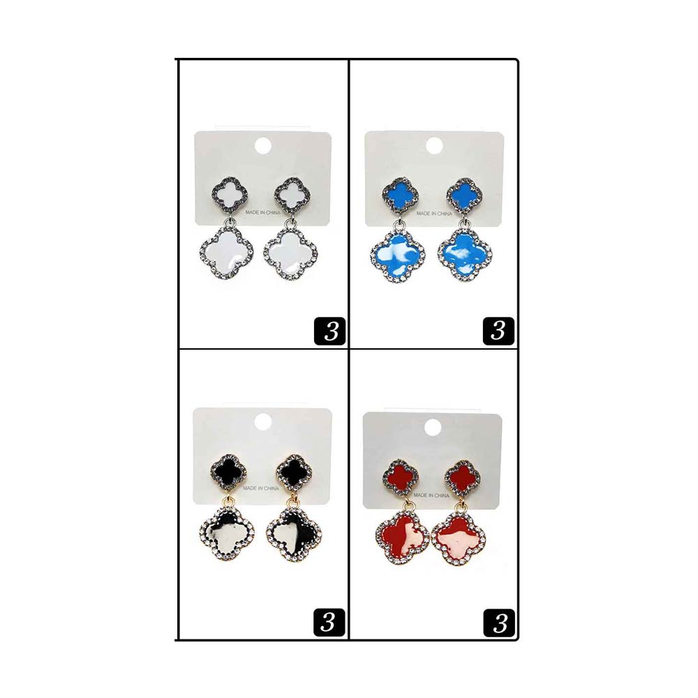 12Pairs - Rhinestone Pave Rim Quatrefoil Drop Earrings