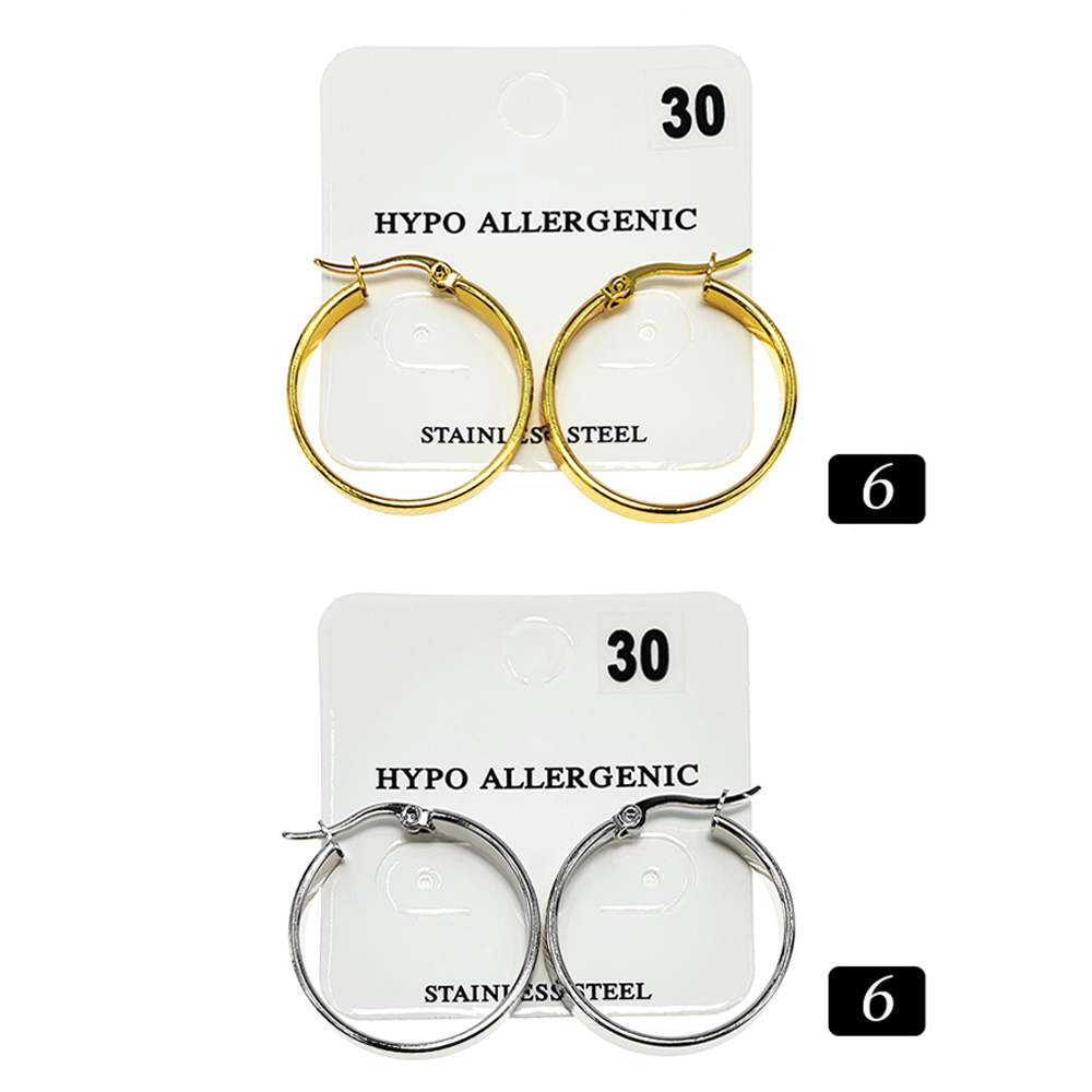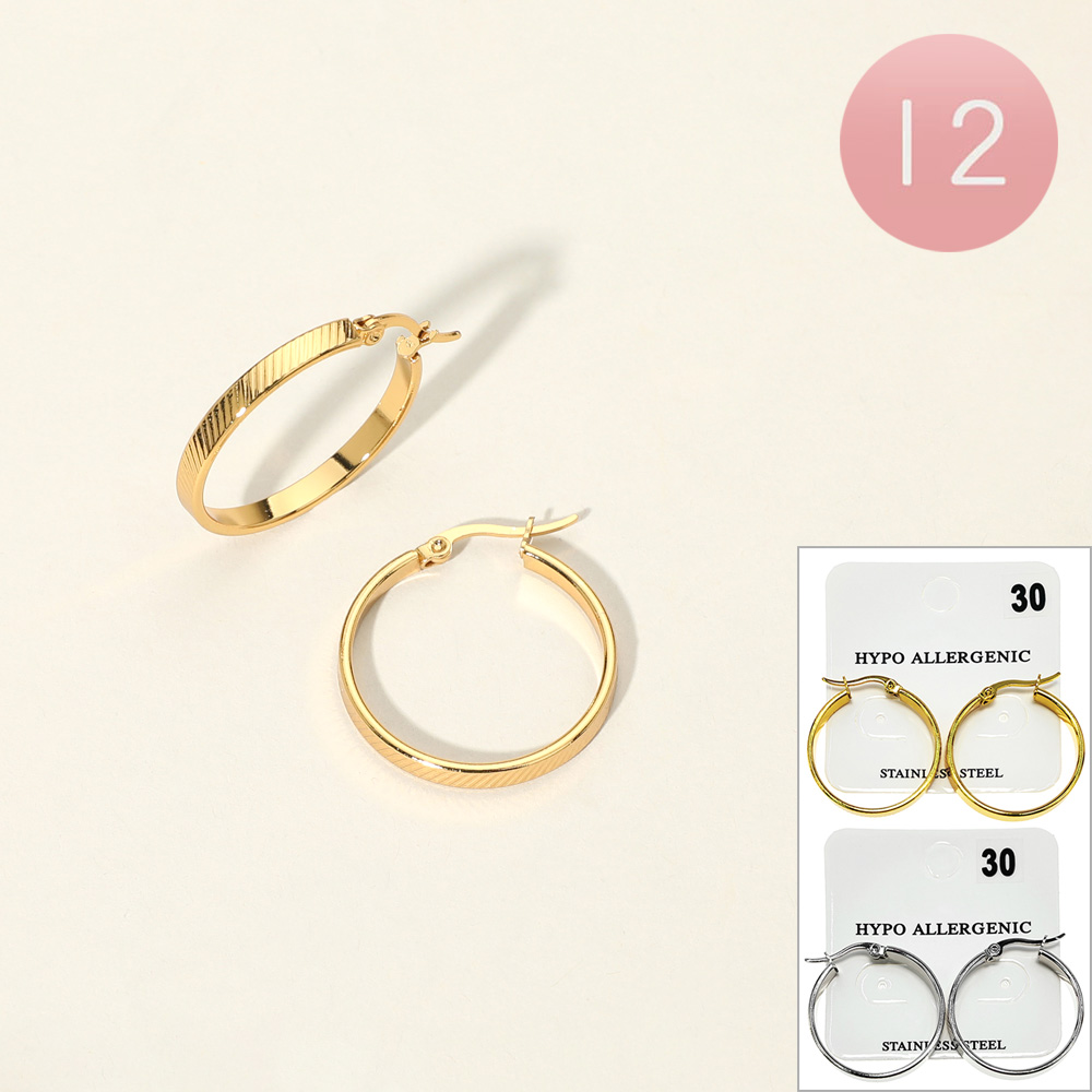 12Pairs - Stainless Steel Pin Catch Hoop Earrings