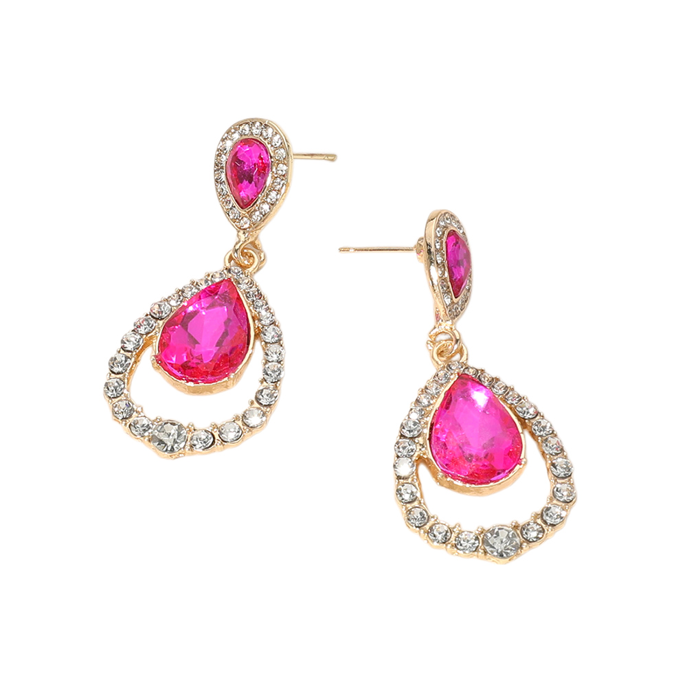 Details • Size : 0.75" X 2" • Post Back • Elegant drop earrings featuring a classic teardrop silhouette with a faceted center framed by shimmering accents. Lightweight and comfortable with graceful movement, they elevate both day and evening looks. Ideal for weddings, formal events, parties, gifting, and timeless accessory collections seeking refined sparkle.