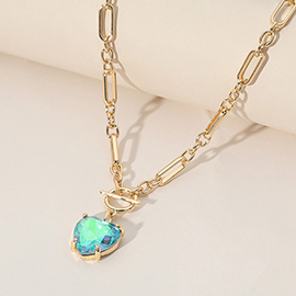Gold Dipped Bold Puffy Heart Pendant Paperclip Link Chain Necklace