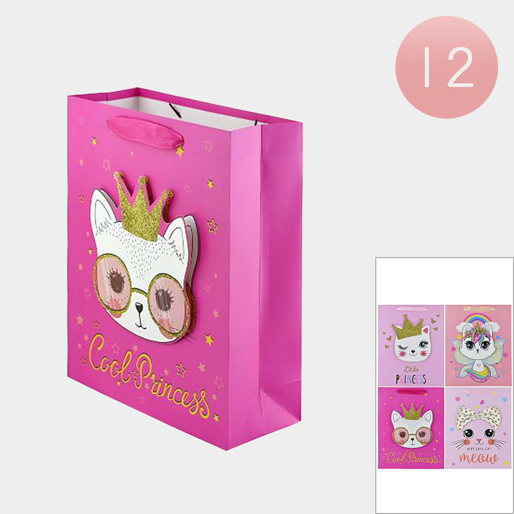 • Add sparkle to any celebration with this 12-pack of princess-themed gift bags. Featuring adorable animals, glitter crowns, and pink tones—perfect for birthdays, parties, and special gifts.
