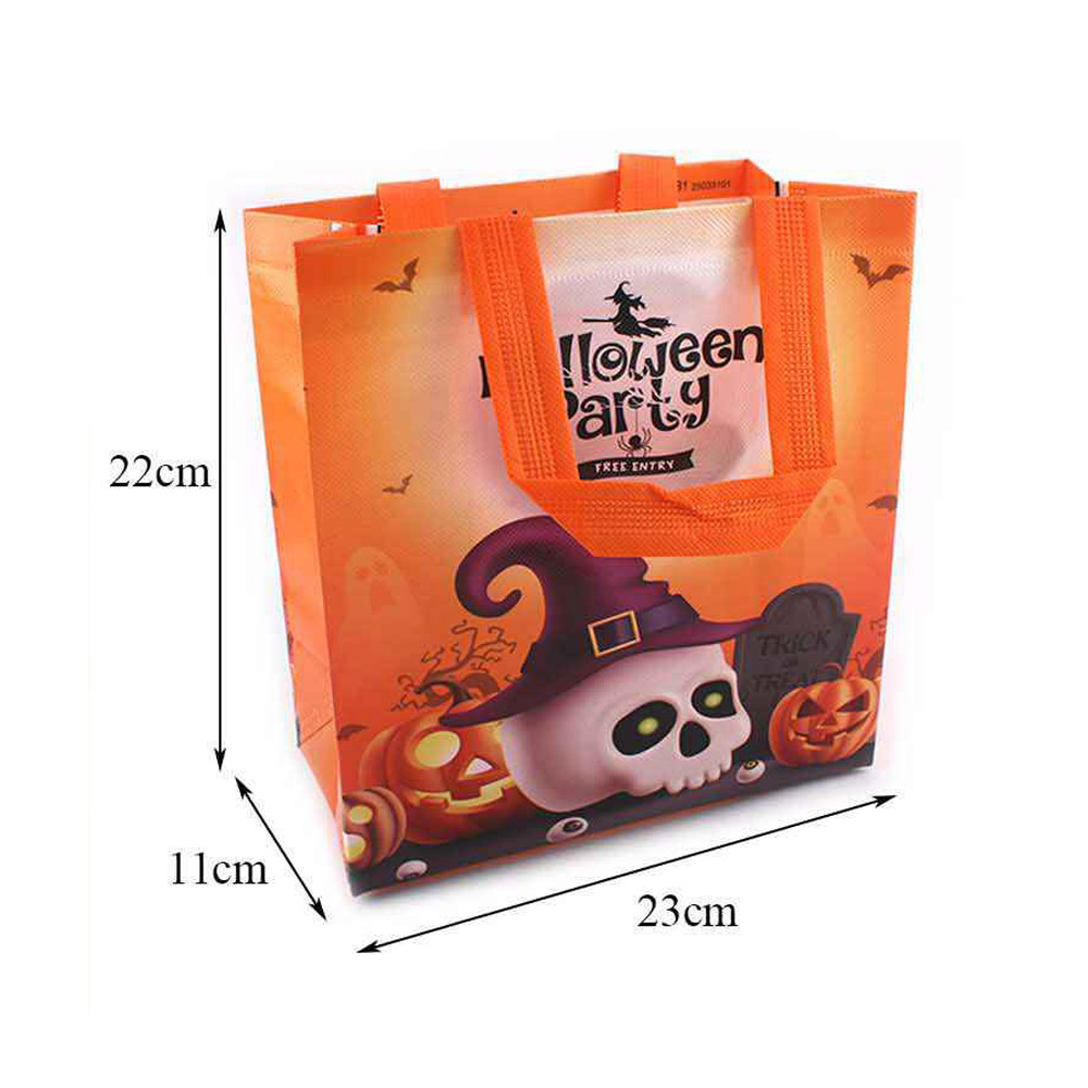 • Reusable Halloween treat bag with spooky skull and pumpkin design, complete with a witch hat for festive flair. Perfect for carrying candy, toys, and party favors. Strong handles make it ideal for trick-or-treating, school events, or themed parties. A fun and durable accessory for Halloween celebrations.