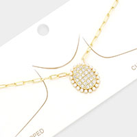 Gold Dipped Rhinestone Paved Layered Double Heart Pendant Necklace