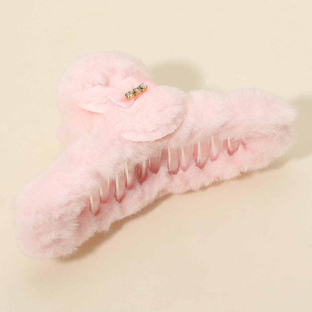 Details • Size : 5" X 2.5" • Chic set of 12 fuzzy hair claw clips featuring a sweet bow bunny design accented with sparkling rhinestones. Designed for a soft grip and stylish look, these clips keep hair secure while adding a playful touch. Perfect for daily wear, gifting, or enhancing casual and cute hairstyles.