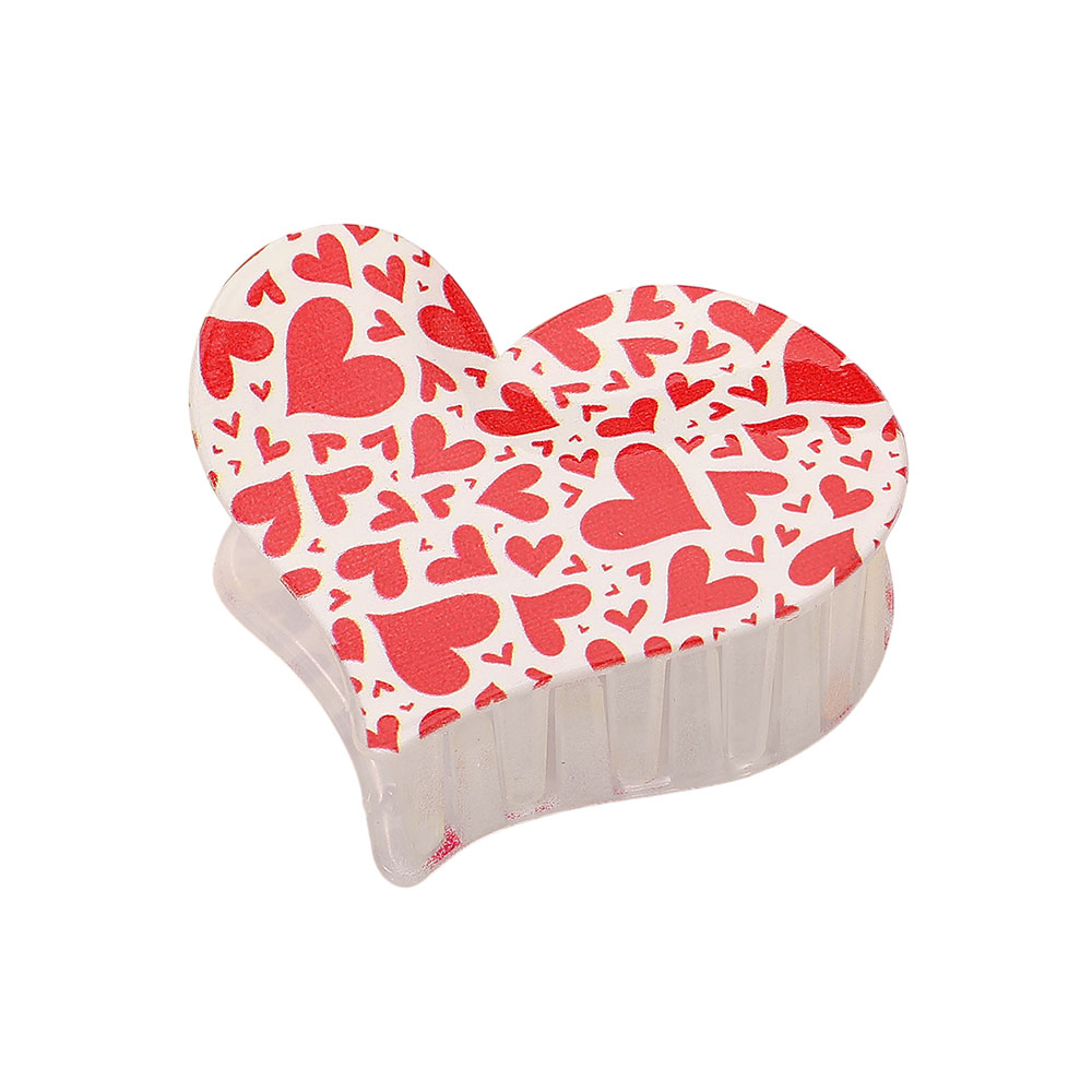 • Add a playful touch to everyday hairstyles with this charming heart-shaped clip featuring an all-over heart motif. Designed to hold sections securely for half-up styles, quick fixes, or finishing looks with a fun statement accent.
