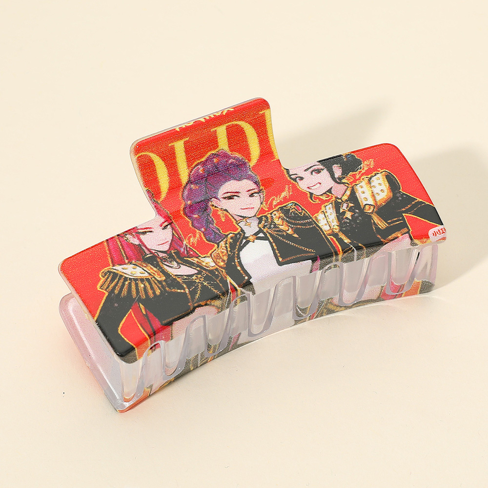 • Durable rectangular hair claw clip with bold anime character print design. Strong grip for holding thick or thin hair securely, making it a stylish and functional accessory for daily wear or special occasions.