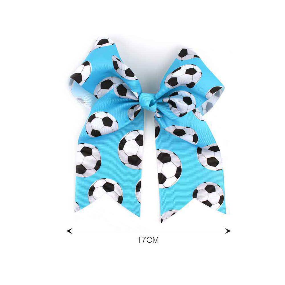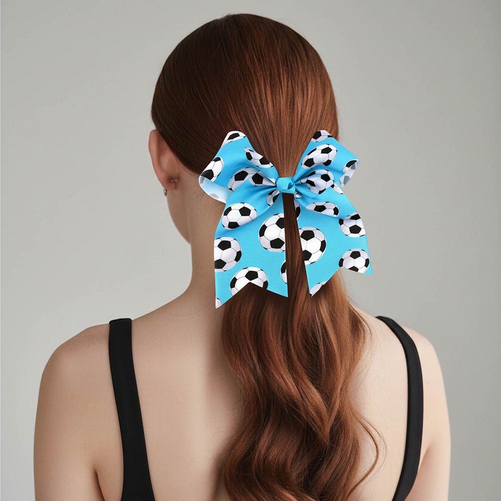 • Sport-inspired soccer ball print hair bow clip designed to add a playful, energetic touch to ponytails and half-up styles. Features a secure clip that holds hair comfortably for game days, school events, team spirit outfits, and casual wear. A fun accessory ideal for sports fans, boutiques, team stores, and gift selections.