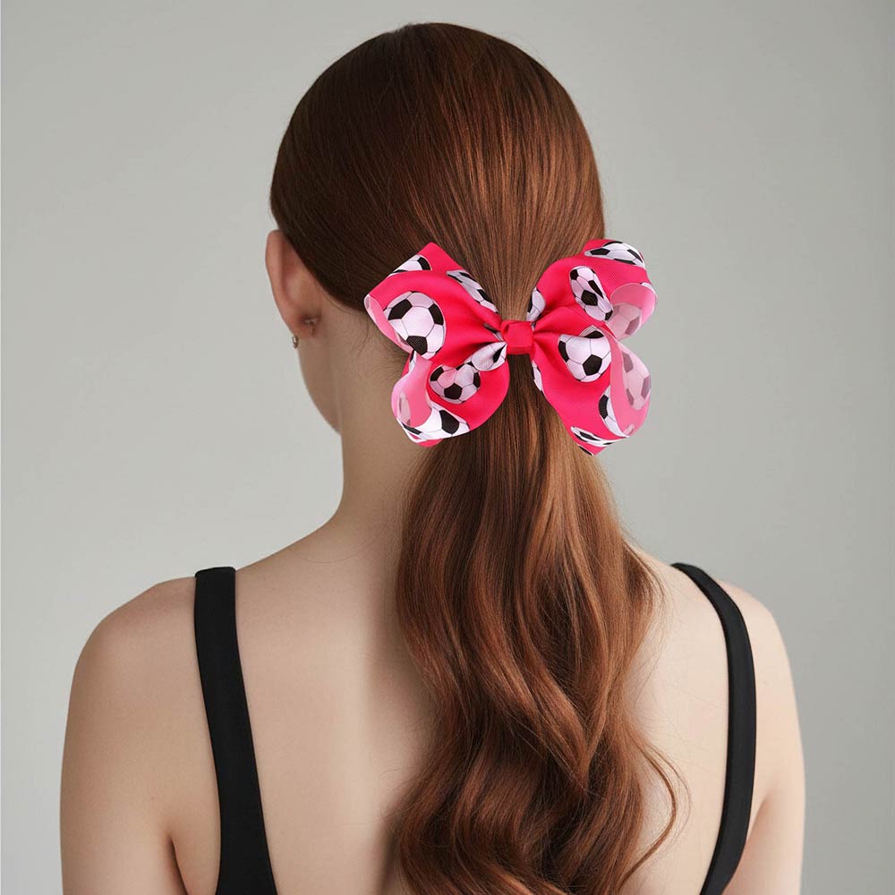 Details • Size : 6.5" X 5.25" • Alligator Snap • Soccer ball print oversized hair bow clip designed for bold, sporty styling. Features a structured bow shape and secure clip for ponytails, braids, and half-up looks. Perfect for game days, school spirit outfits, team events, and casual wear. A popular accessory choice for sports fans, boutiques, and gift assortments.