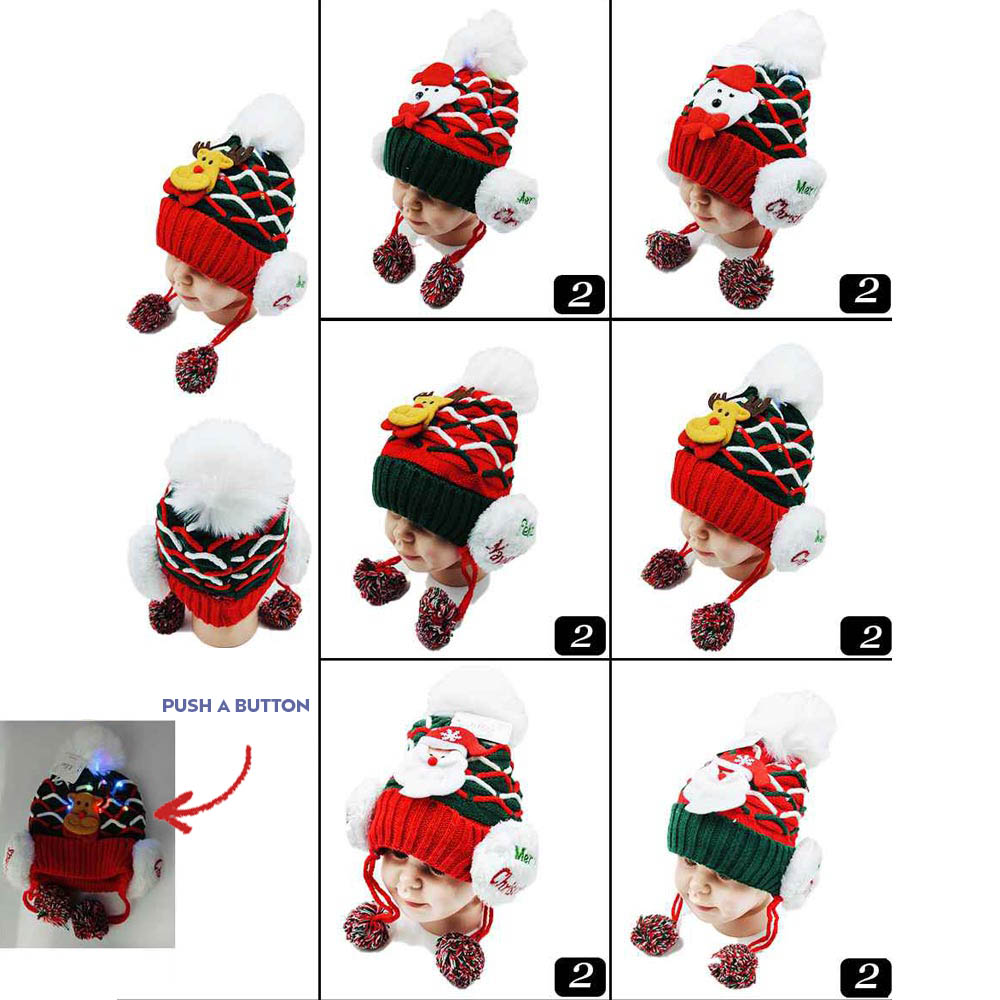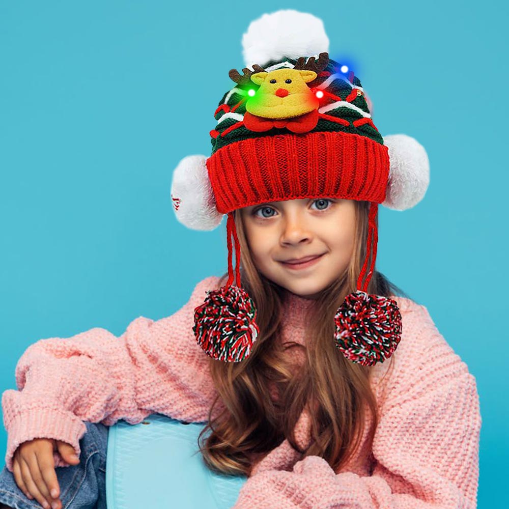 12PCS - Kids LED Light Up Animal Pointed Christmas Pom Pom Beanie Hat