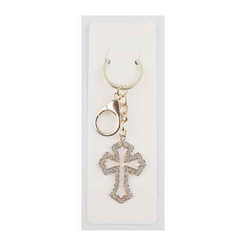 Details • Size : 4.25" L, 1.4" X 3.25" • Elegant cross charm keychain accented with shimmering rhinestones and a polished outline for standout appeal. Designed with a sturdy keyring and lobster clasp for easy attachment to keys, handbags, or totes. A meaningful accessory ideal for gifting, faith-inspired collections, and everyday decorative use.