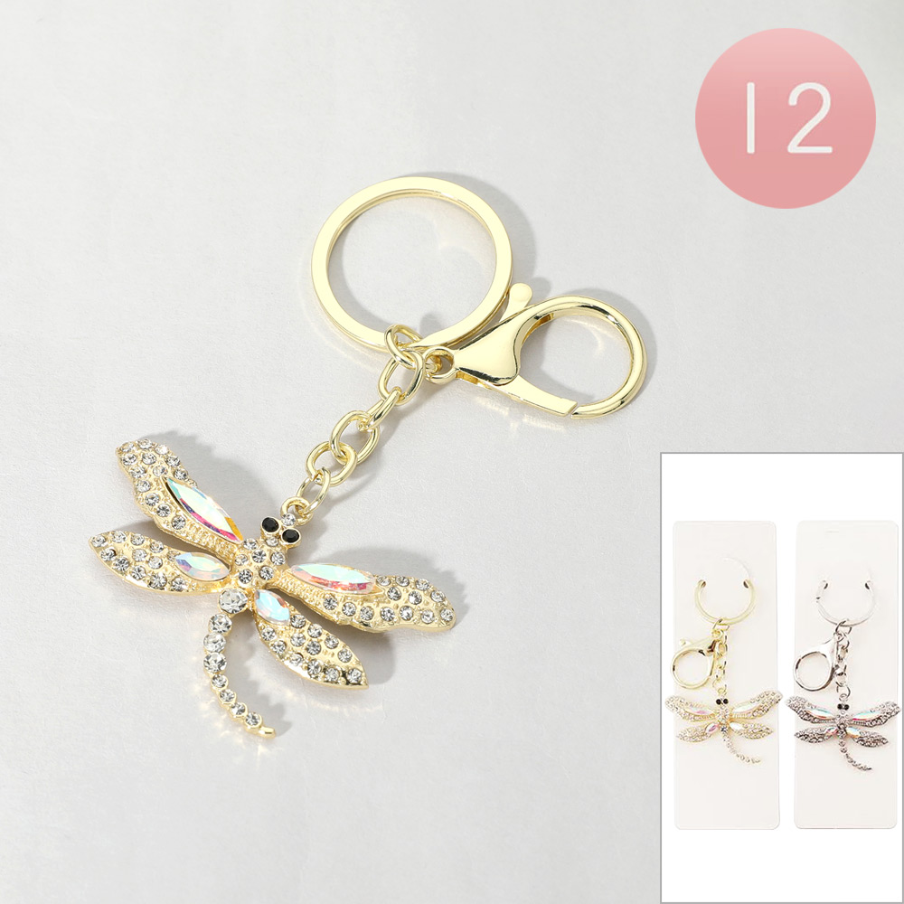 12PCS - Rhinestone Paved Dragonfly Keychains