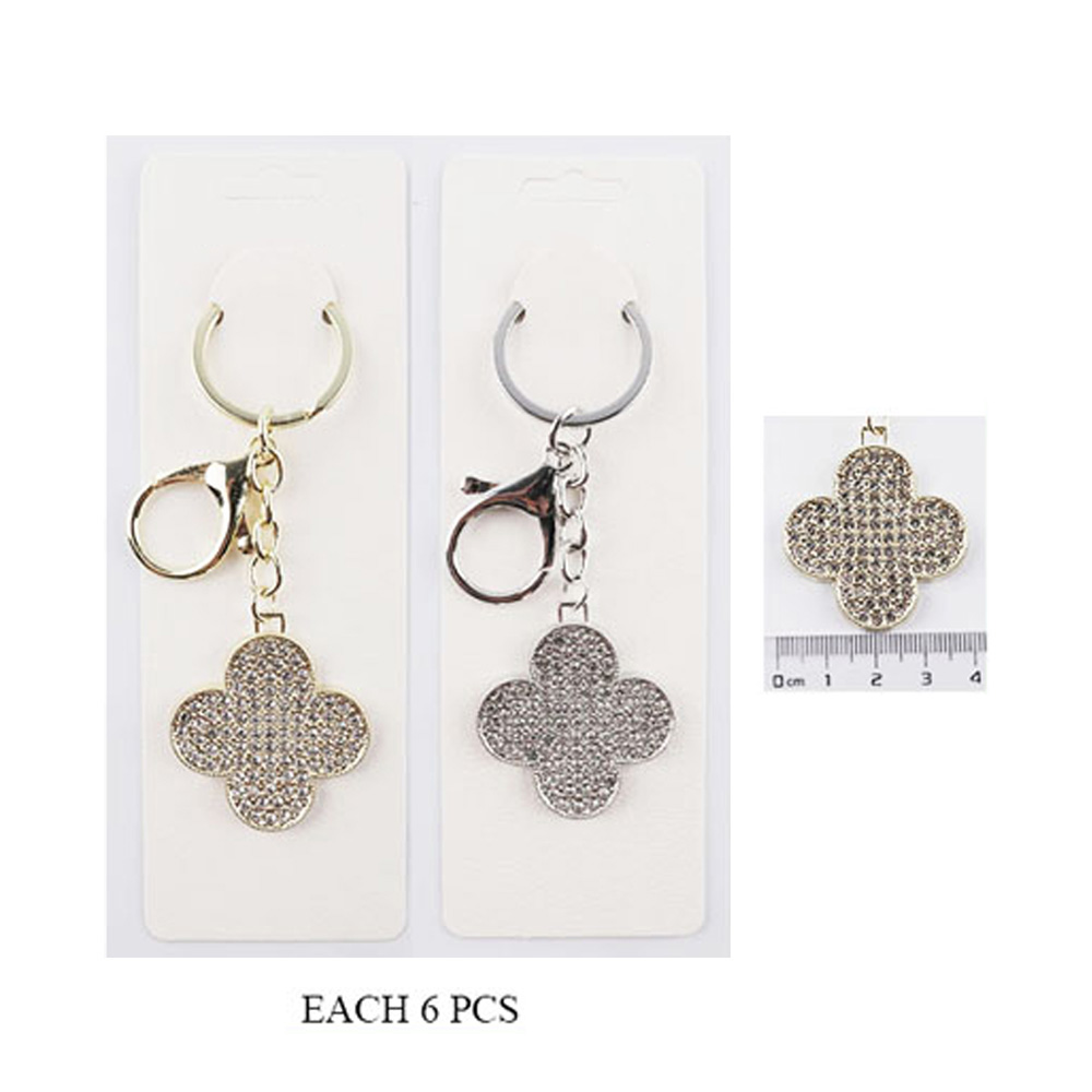 12PCS - Rhinestone Paved Quatrefoil Keychains