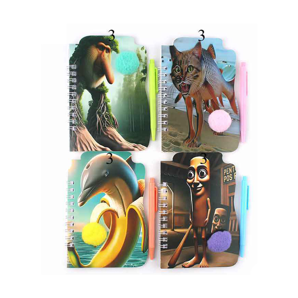• Add fun to note-taking with this assorted animal-themed notebook and pen set. Each spiral-bound notebook features a playful 3D cover with a soft pom pom accent and comes paired with a matching pen. Ideal for kids’ school supplies, party favors, or creative journaling activities.