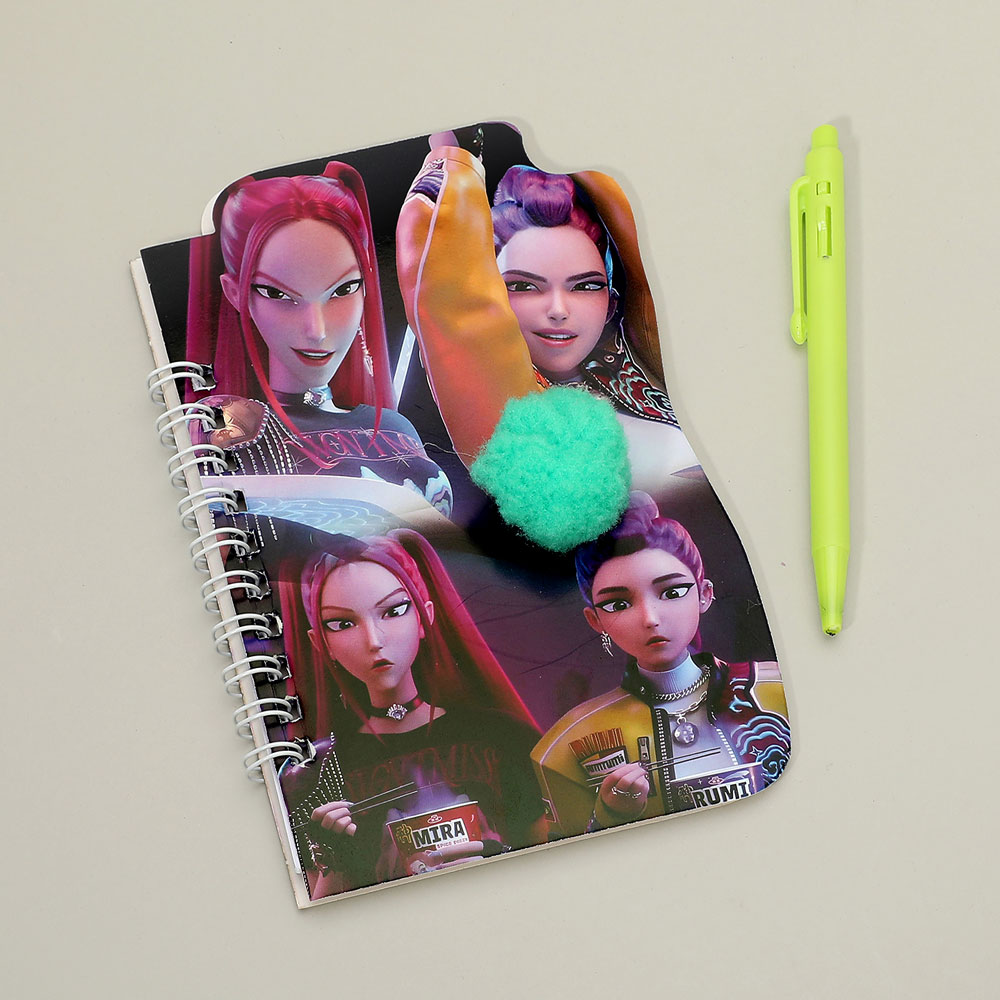 Details • Note Size : 4" X 5.75" • Ball Pen Size : 4" L • K-pop demon hunters character notebook set designed for fans and gift buyers. Features themed notebook with matching pen for journaling, notes, and everyday use. A fun collectible stationery item ideal for novelty sections, fan merchandise displays, and impulse purchases.