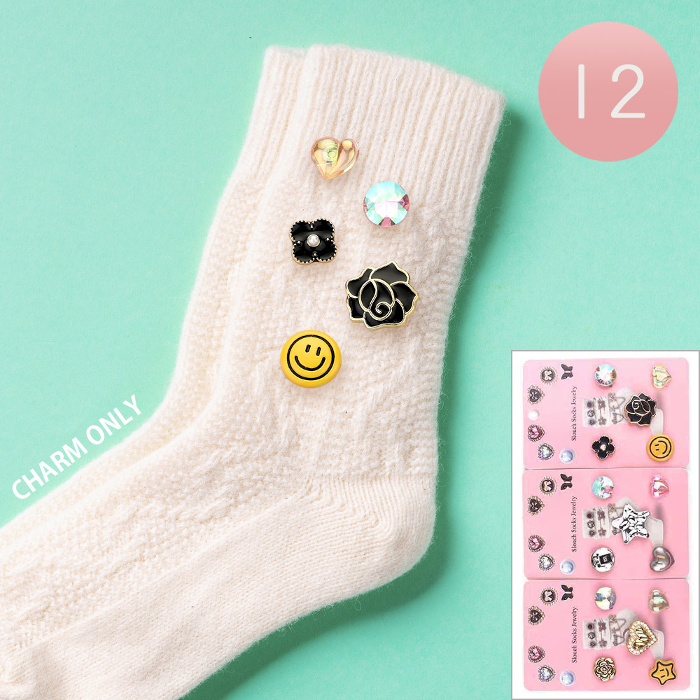 12 SET OF 5 - Herat Star Flower Smile Face Pin Trendy Slouch Socks Charm Jewelry