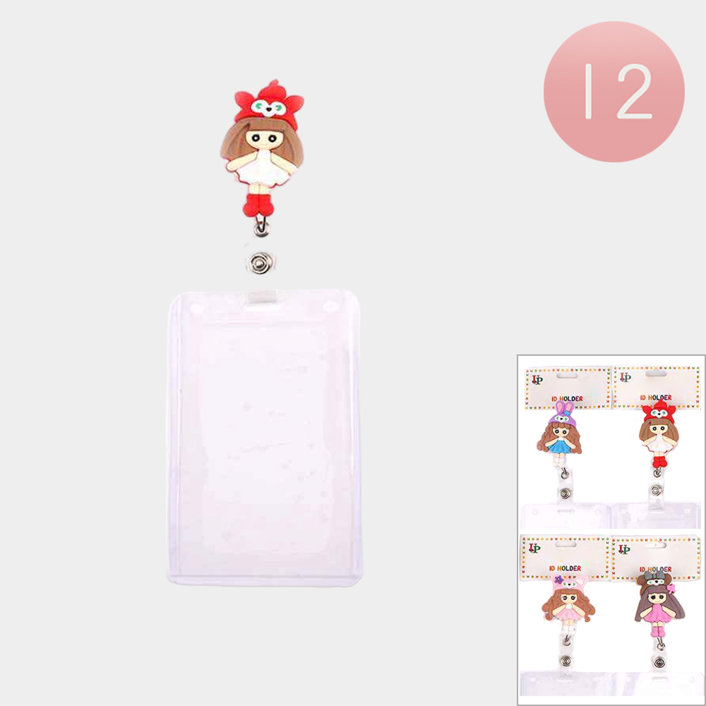 Details • Size : 6.75" L. 3.1" X 4.8" • Set of 12 cute cartoon girl badge reels with clear ID holders, featuring assorted playful character designs. Perfect for nurses, teachers, and office staff—adds fun personality while keeping your badge or ID card secure and easy to access.
