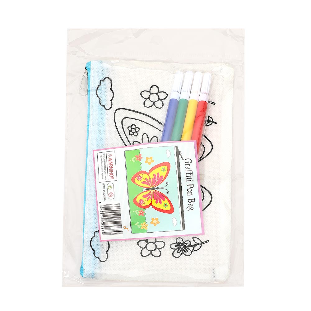 Details • Pouch Size : 4.7" X 8" • Pen Size : 3.5" L • Comes with 4 Colored Pens • Creative kids graffiti pen bag craft set featuring a printable zip pouch and included markers for easy decorating fun. Perfect for party favors, classroom projects, rainy-day activities, travel entertainment, and hands-on play that inspires imagination and creativity.