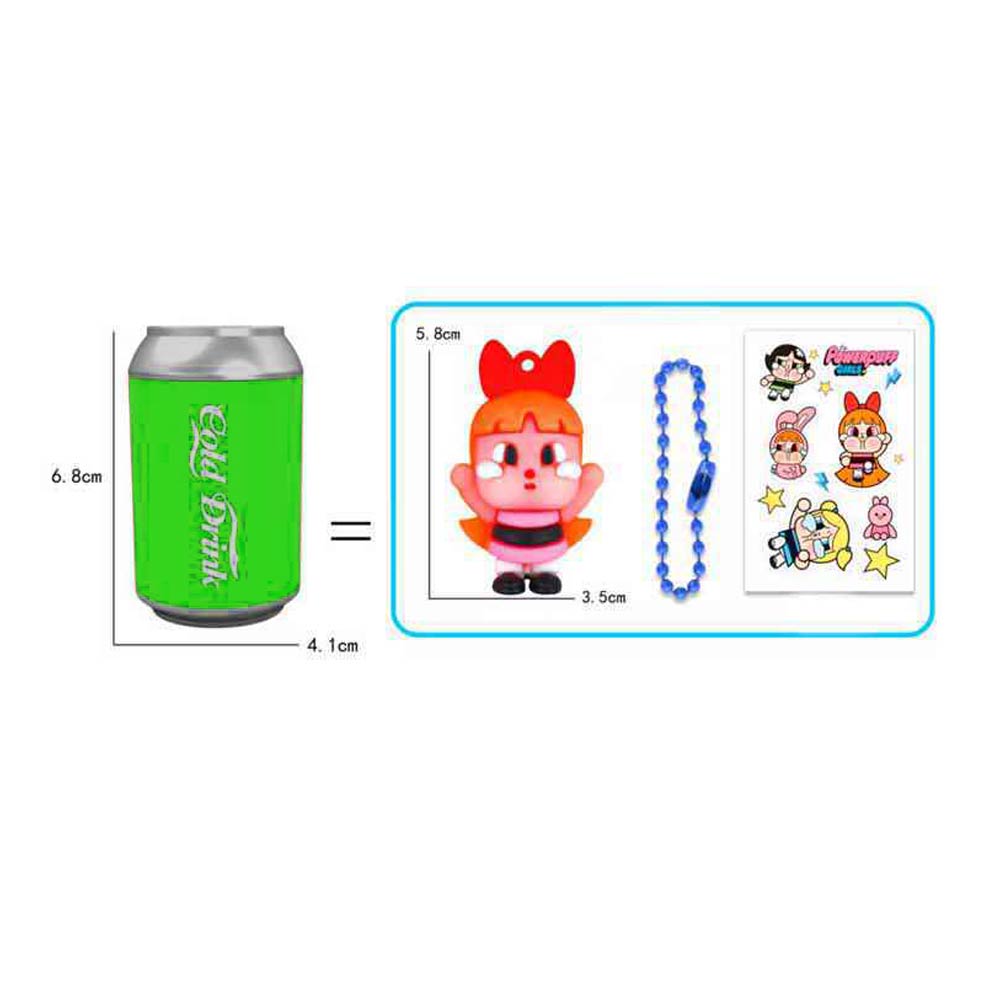 Details • Size : 1.6" X 2.6" • Soda can style surprise toy featuring a hidden mini character figure, keychain, and sticker set inside. Ideal for kids party favors, prize boxes, vending machines, gift bags, and novelty assortments. Fun mystery reveal design encourages repeat play and makes a great bulk option for events and promotions.
