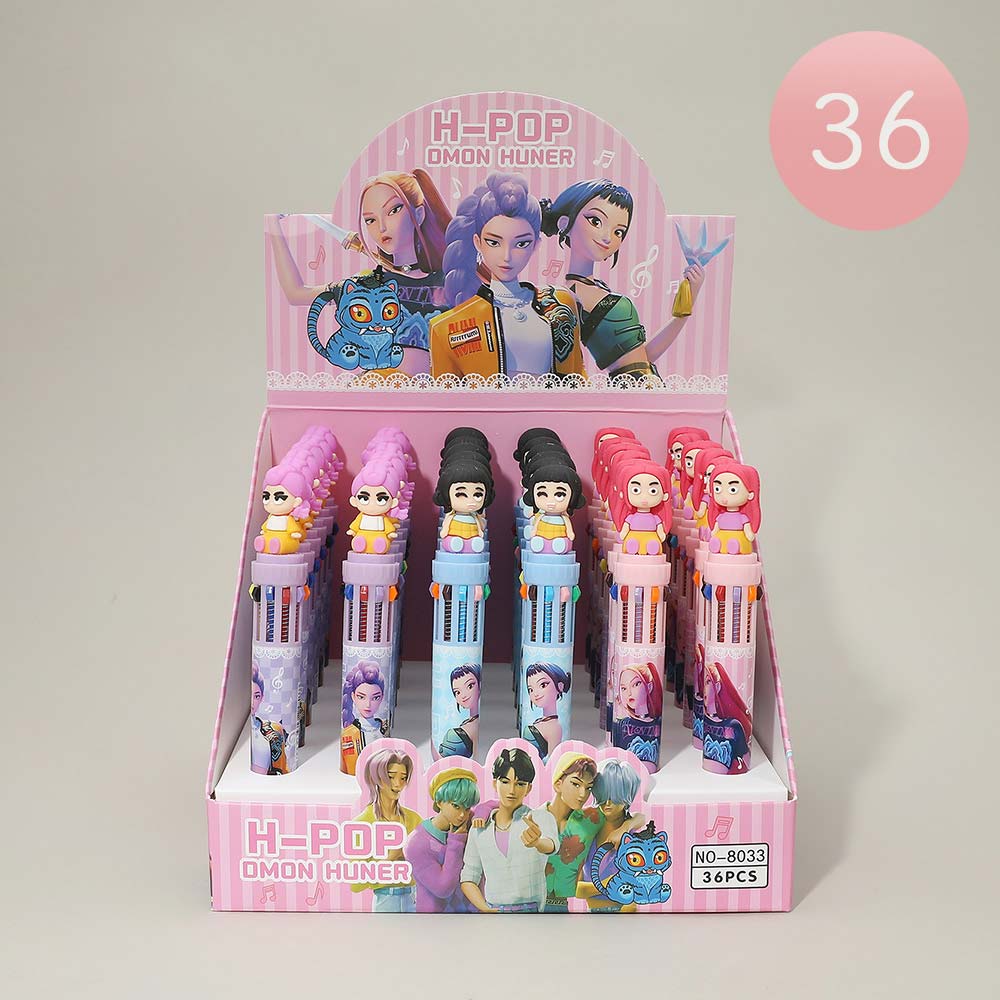 Details • Size : 6" L • This Kpop Demon Hunters character multi-ink pen display set includes collectible figure-top pens in assorted designs, ideal for stationery shops, gift stores, and pop culture displays. Designed for smooth writing and visual appeal, these novelty pens attract fans, students, and collectors while boosting impulse sales at checkout. Perfect for bulk retail, party favors, and themed merchandise collections.