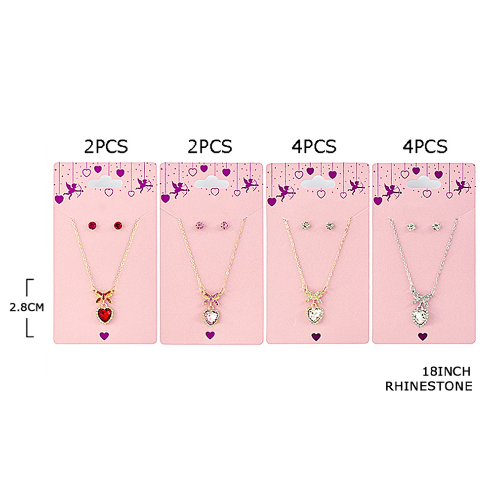 Details • Necklace Size : 19" + 3" L • Pendant Size : 0.75" X 1" • Earrings Size : 0.25" L • This necklace and stud earring set features a heart pendant accented with delicate details, paired with matching stud earrings for a coordinated finish. A charming accessory duo suited for casual looks, gifting, party outfits, and everyday wear, adding a playful yet elegant touch.