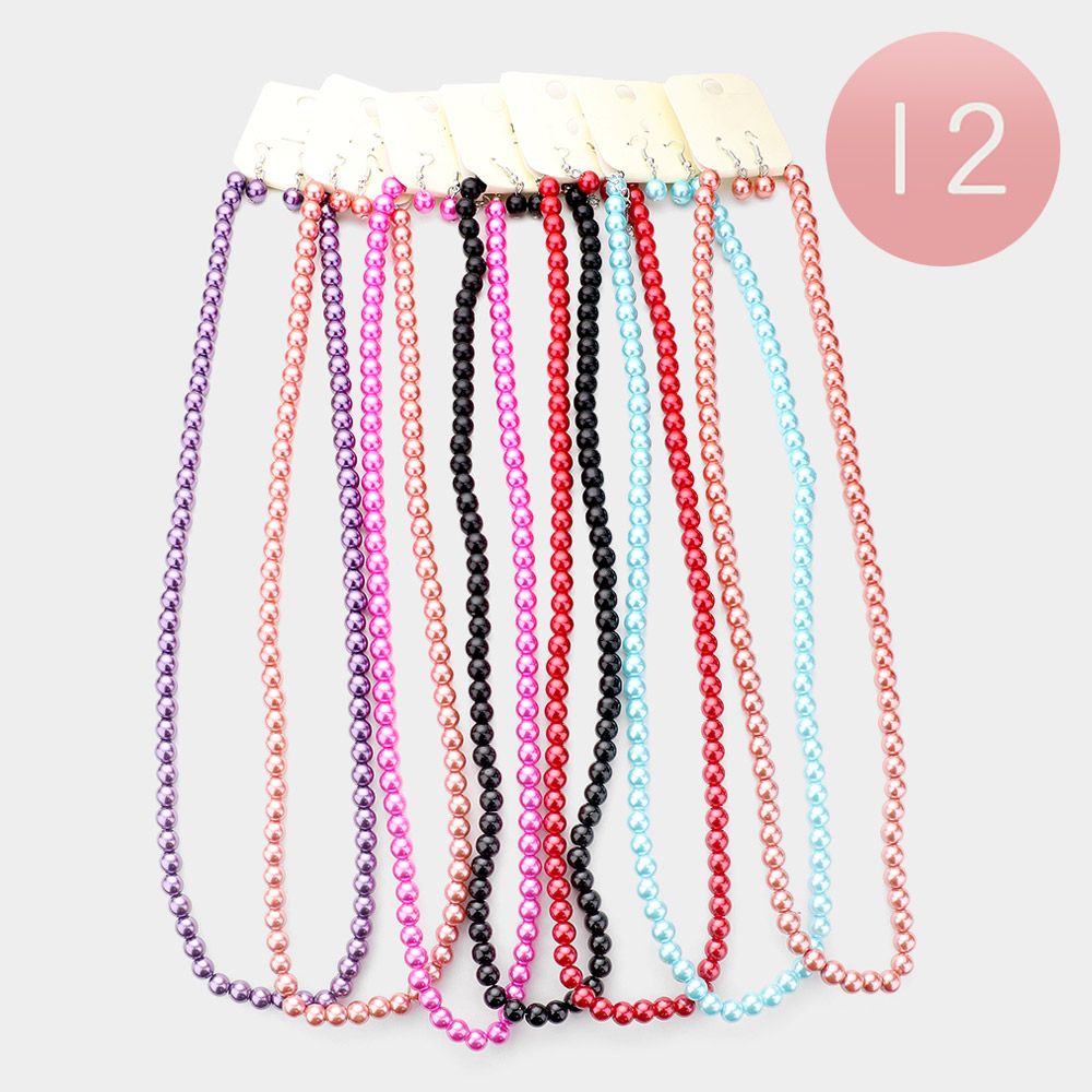 12PCS - Faux Pearl Necklace Set