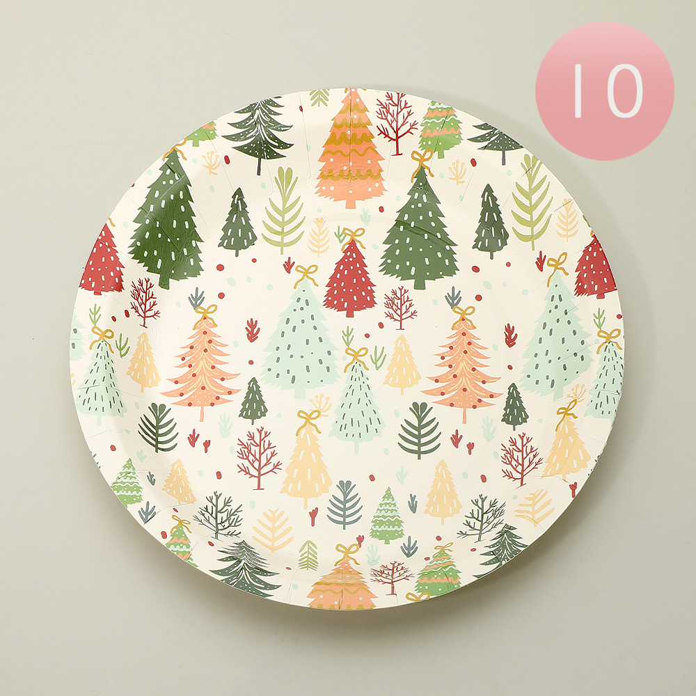 Details • Size : 10" X 10" • Serve your holiday meals with charm using these festive paper plates featuring a colorful Christmas tree pattern. Perfect for parties, family gatherings, and seasonal celebrations, this 10-pack adds cheerful style and convenience to your holiday entertaining.
