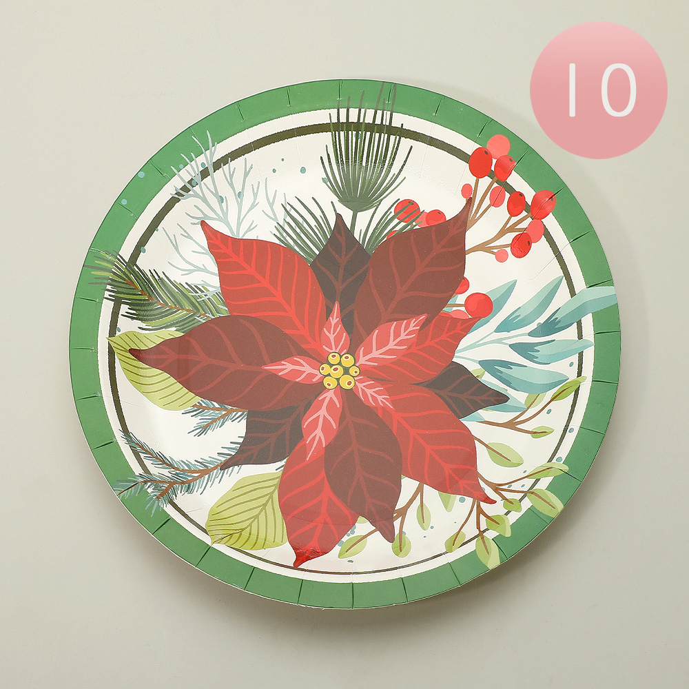 10PCS - NOEL Holiday Wreath Poinsettia Paper Plates