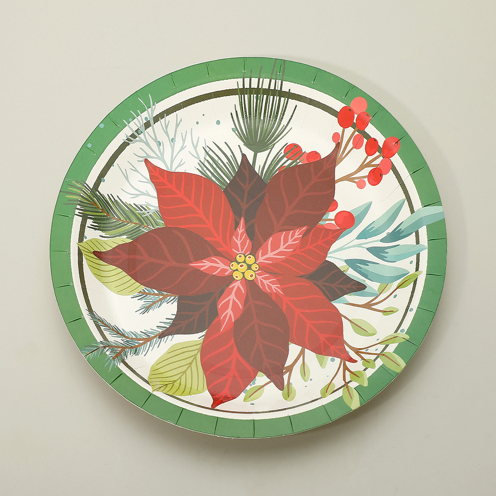 10PCS - Holiday Poinsettia Print Paper Plates 10PCS - Holiday Poinsettia Print Paper Plates 10PCS - Holiday Poinsettia Print Paper Plates