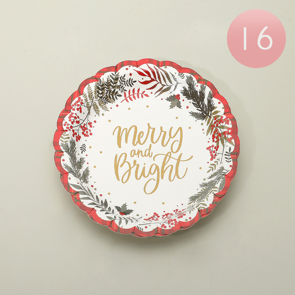 16PCS - MERRY AND BRIGHT Message Holiday Small Paper Plates