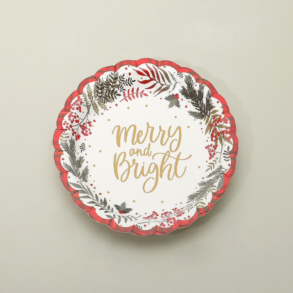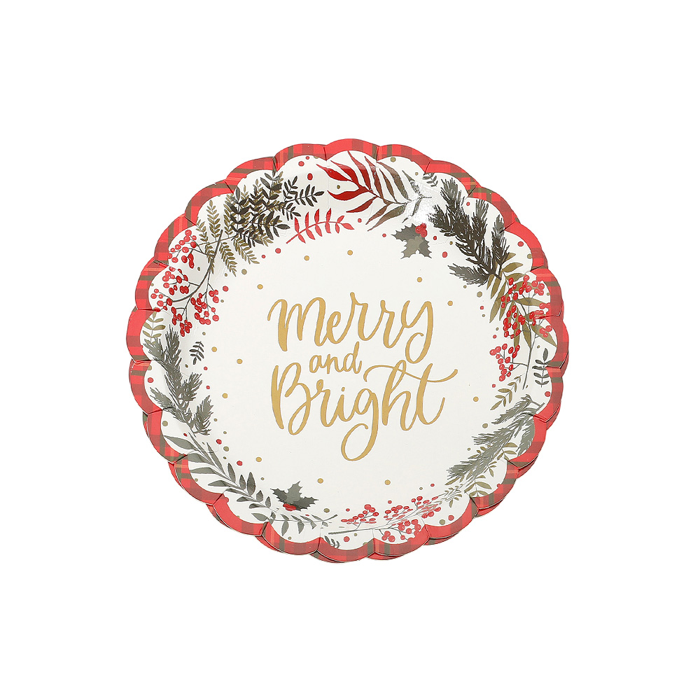 10PCS - MERRY AND BRIGHT Message Holiday Paper Plates