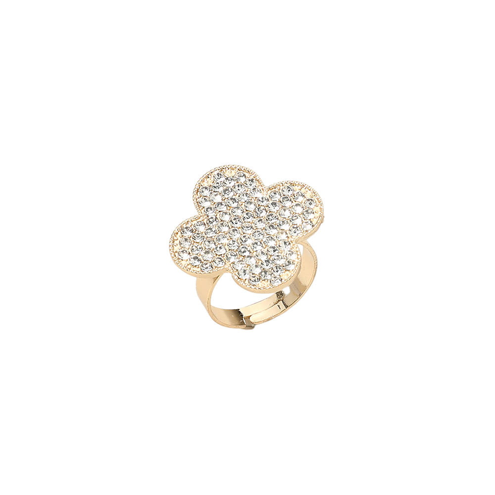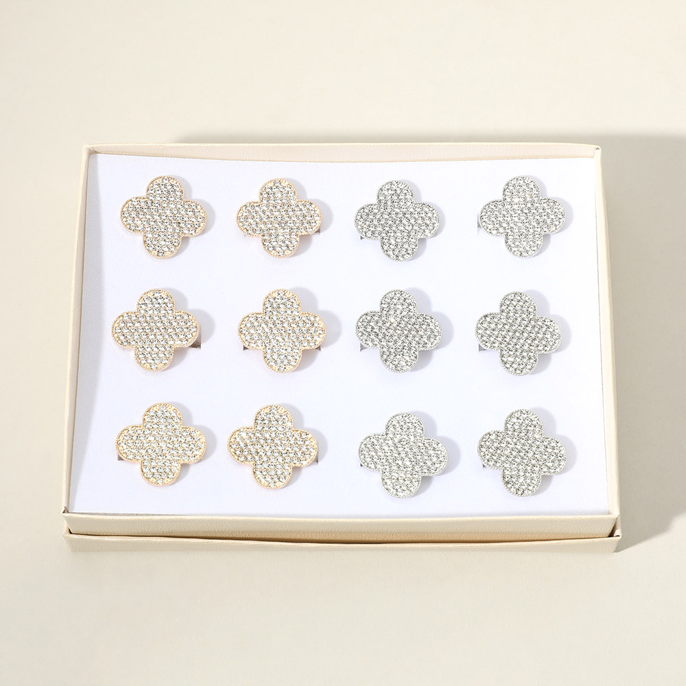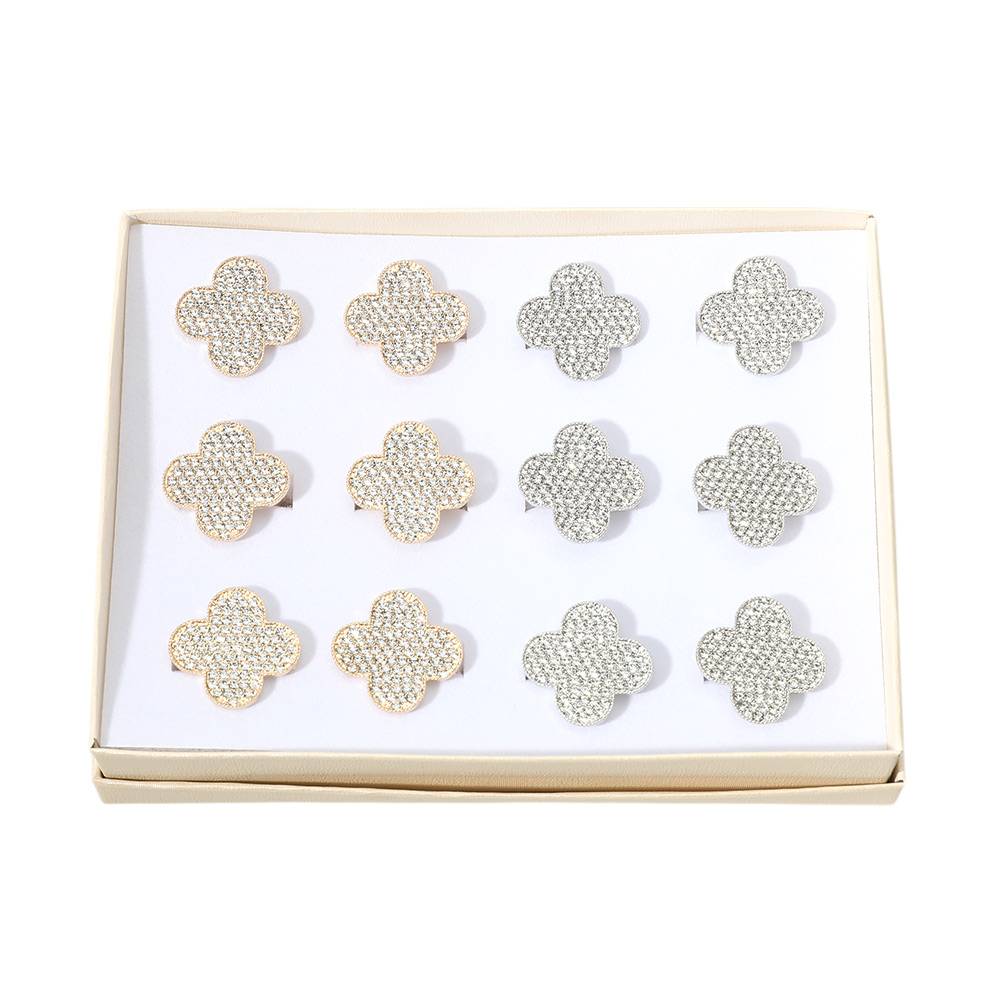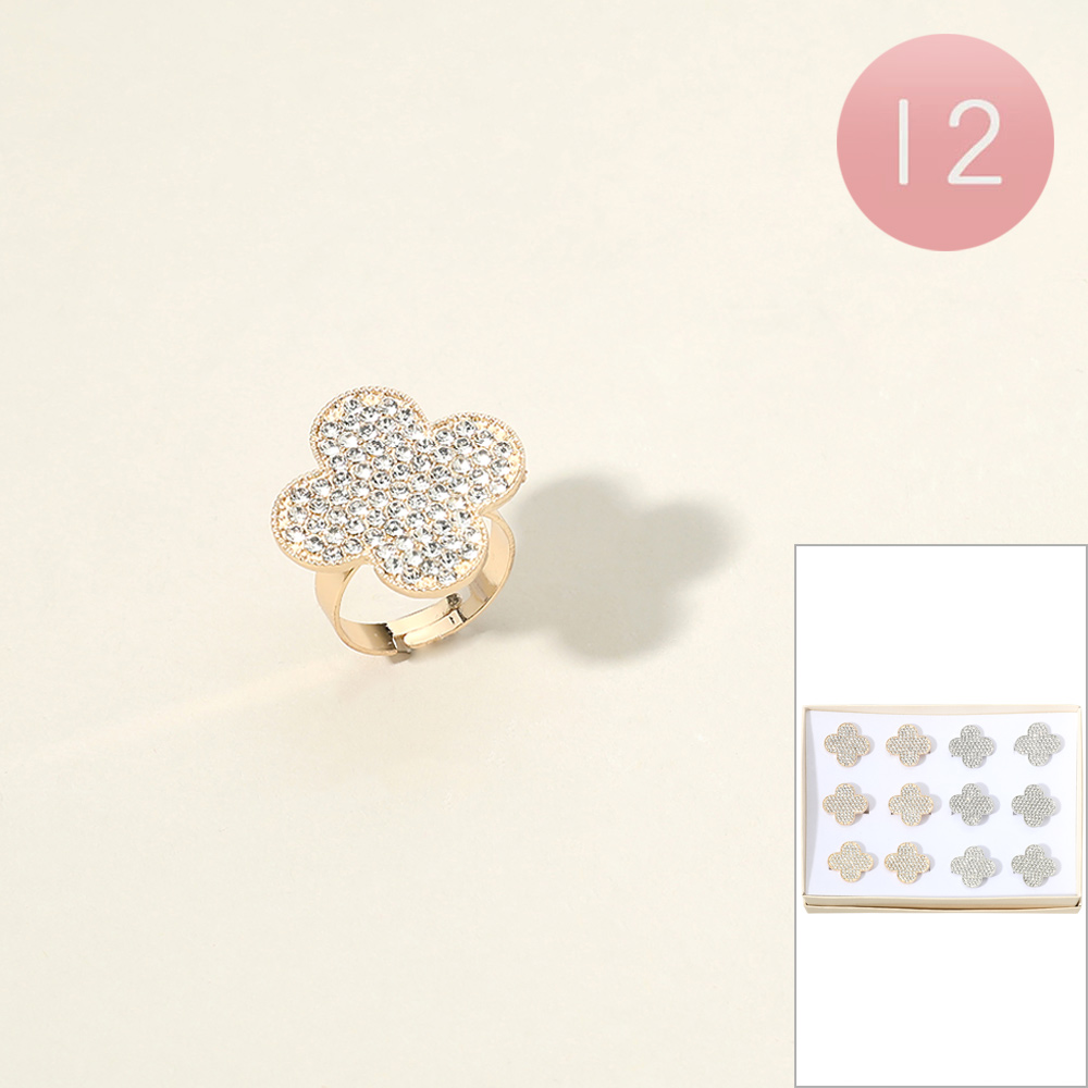 12PCS - Stone Paved Quatrefoil Adjustable Rings