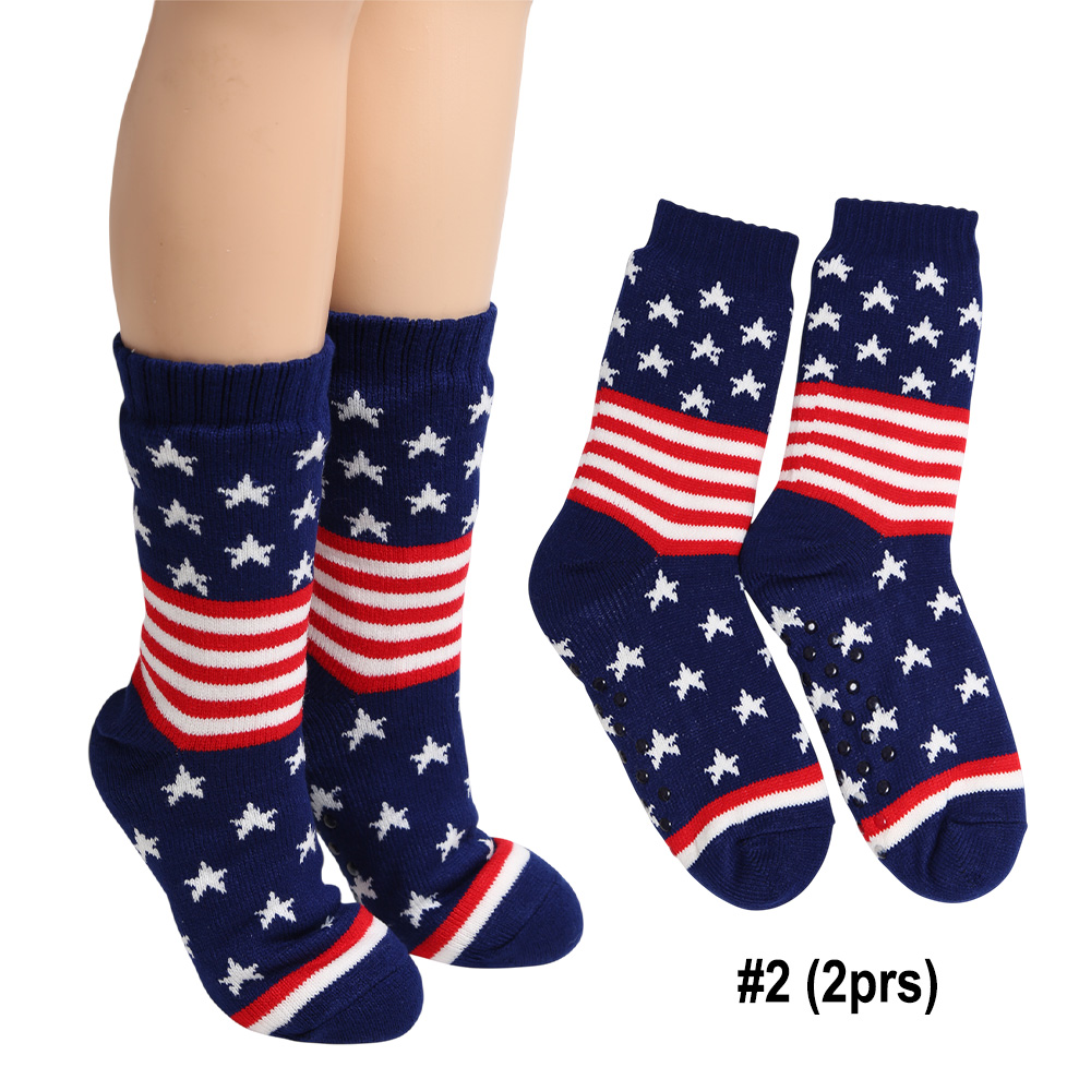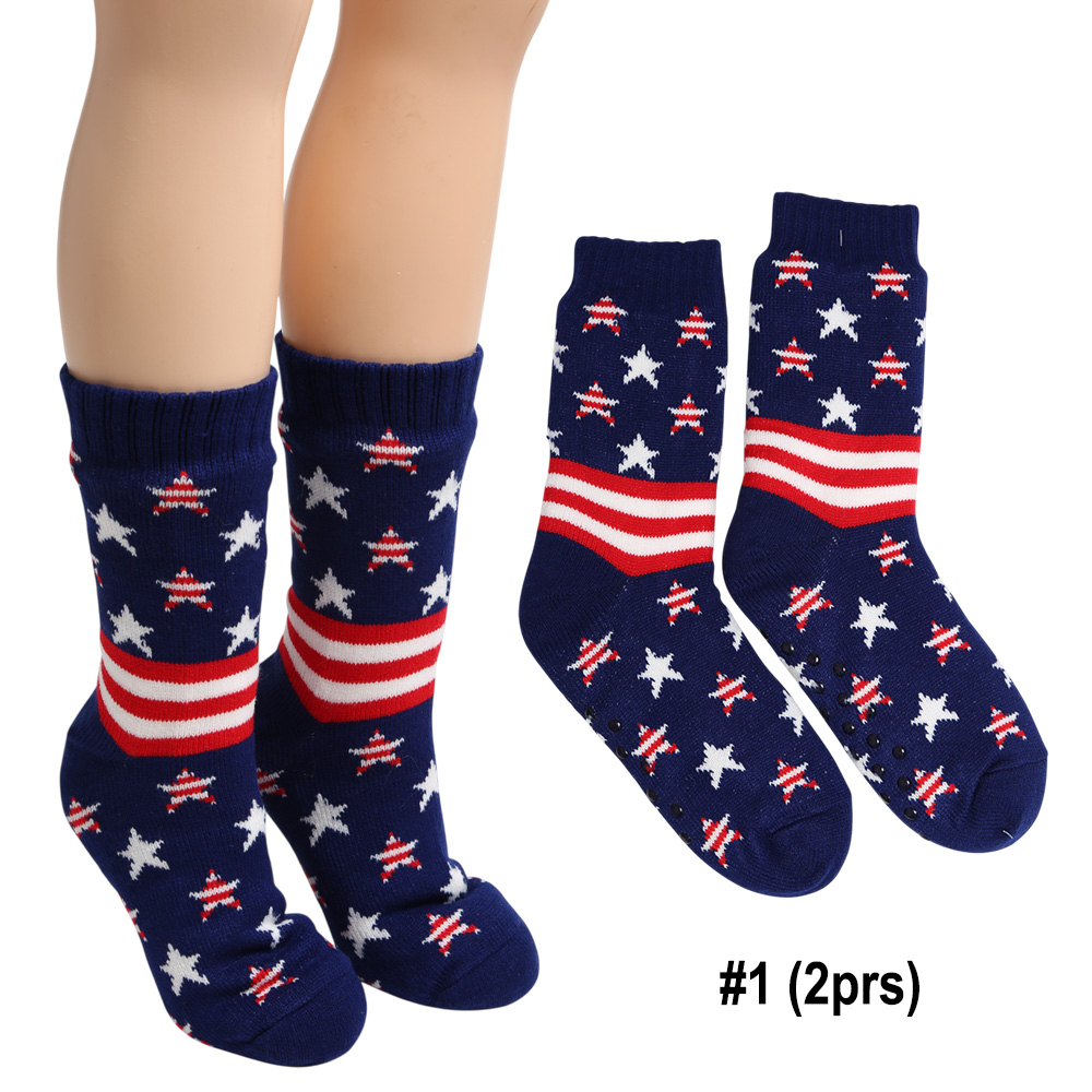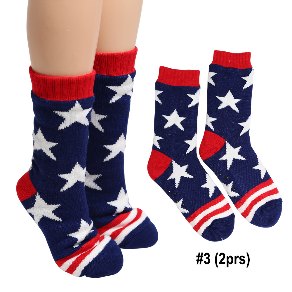 Details • Size : One Size • Material : 100% Polyester • Celebrate in style with this 6-pair pack of patriotic socks featuring bold stars and stripes designs. Perfect for everyday wear, themed events, or festive holidays, these socks offer comfort with a fun, spirited touch. A great gift choice to show off personality and pride year-round.