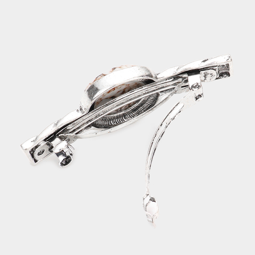 Antique Metal Natural Stone Accented Barrette