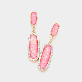 Rhinestone Trimmed Teardrop Stone Dangle Evening Earrings