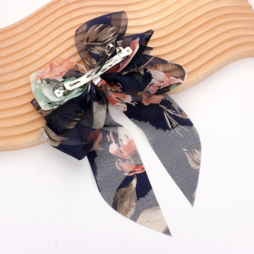 Oversized Sheer Floral Print Bow Barrette