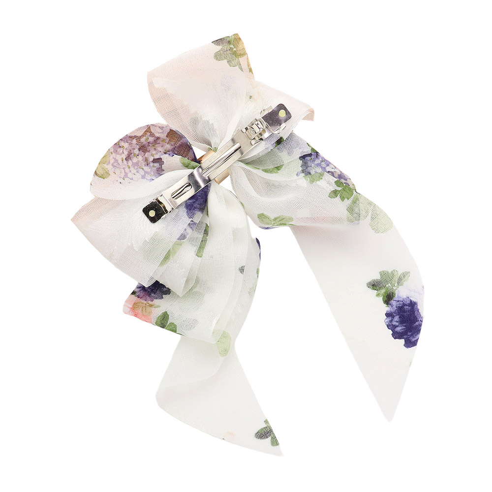 Oversized Sheer Floral Print Bow Barrette