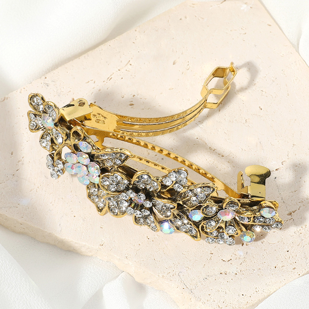 Stone Paved Flower Leaves Embellished Barrette
