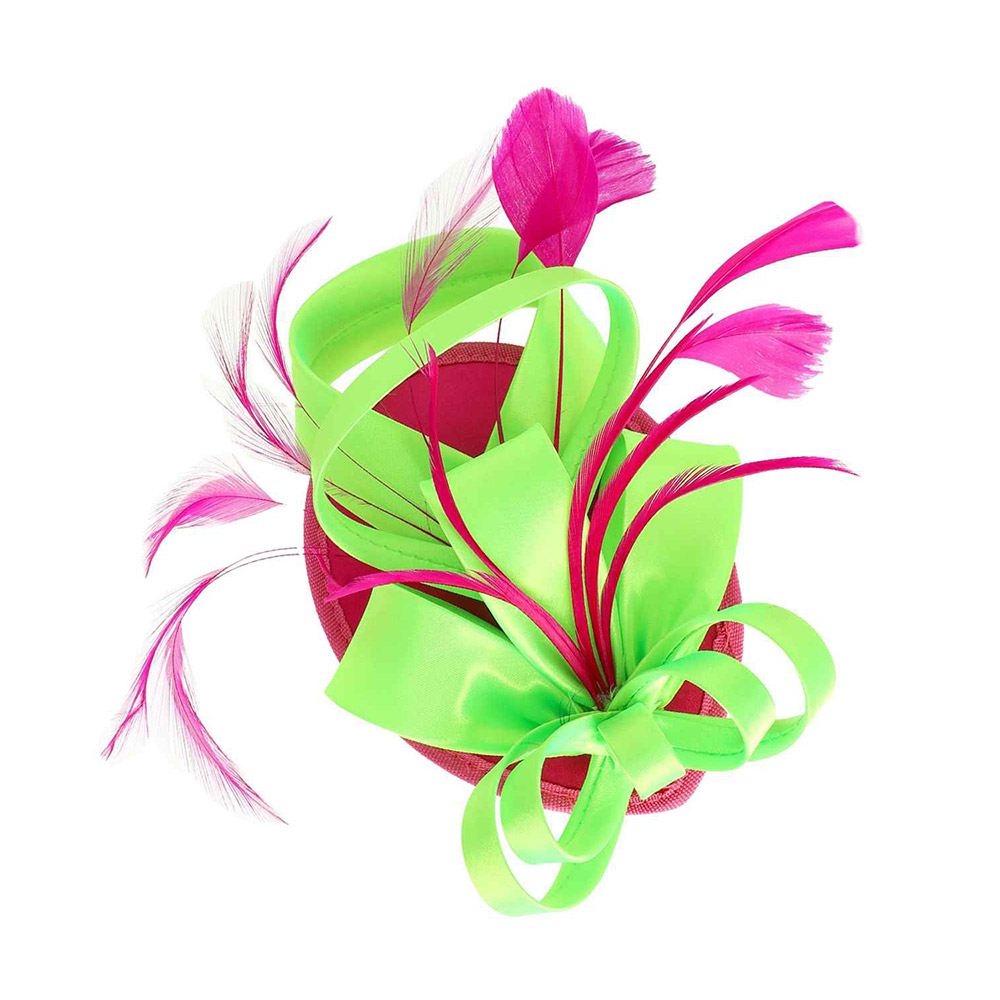 Details • Size : 7" X 8" • Dual : Hair Pinch Clip / Headband • Stylish fascinator headpiece featuring sculpted ribbon loops and feather accents, perfect for events, parties, or race day looks. Designed to sit elegantly on the headband, this statement accessory adds charm and flair to any dressy ensemble.