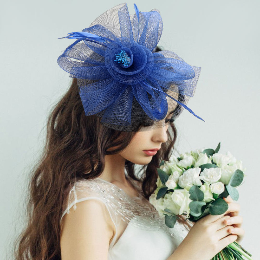 Rhinestone Center Feather Bow Accent Dressy Hat