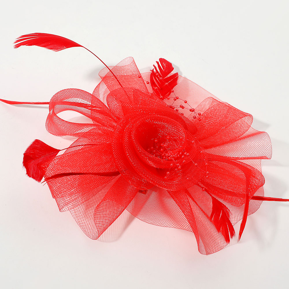 Flower Feather Pearl Mesh Bow Fascinator / Headband