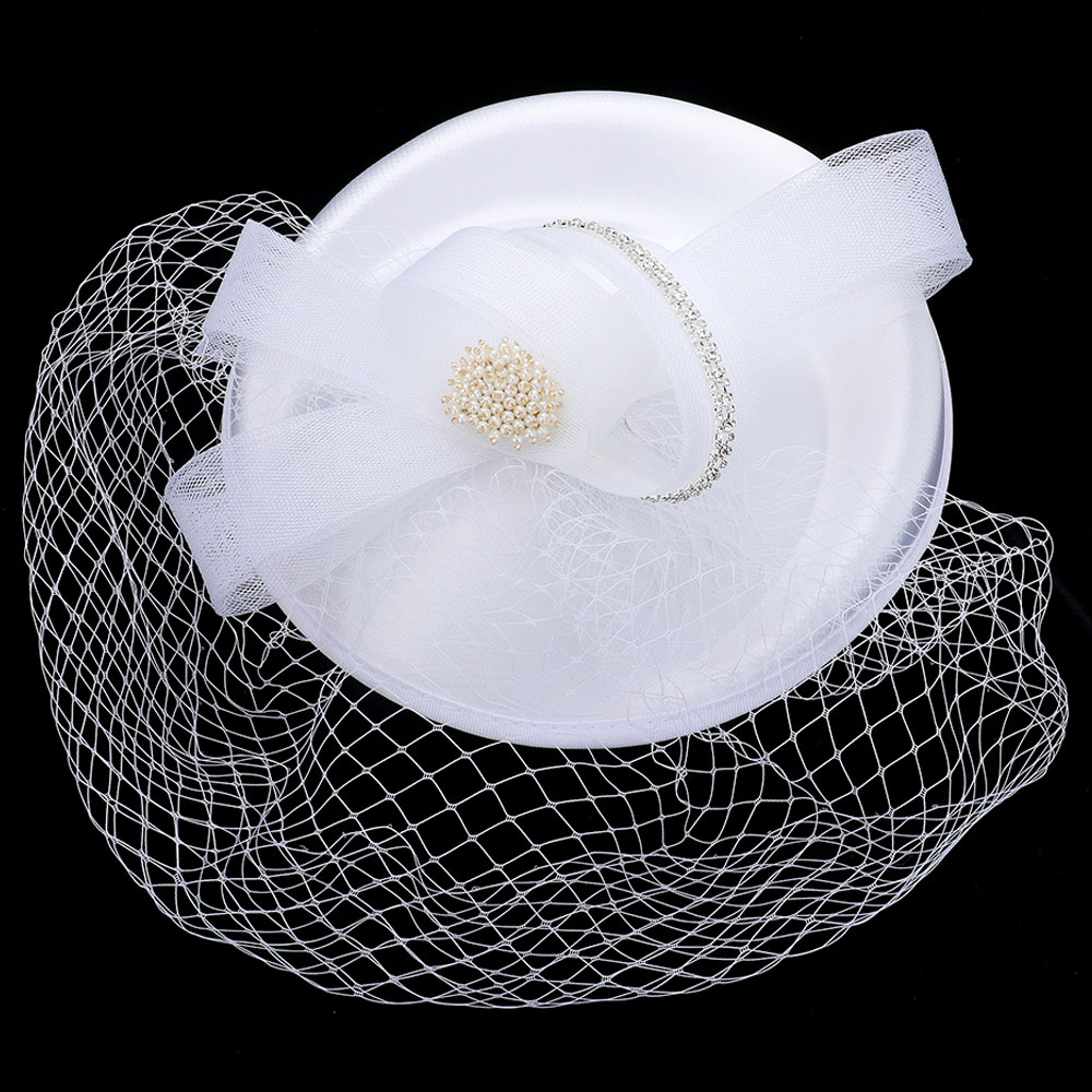Pearl Brooch Pointed Mesh Bow Fascinator / Headband